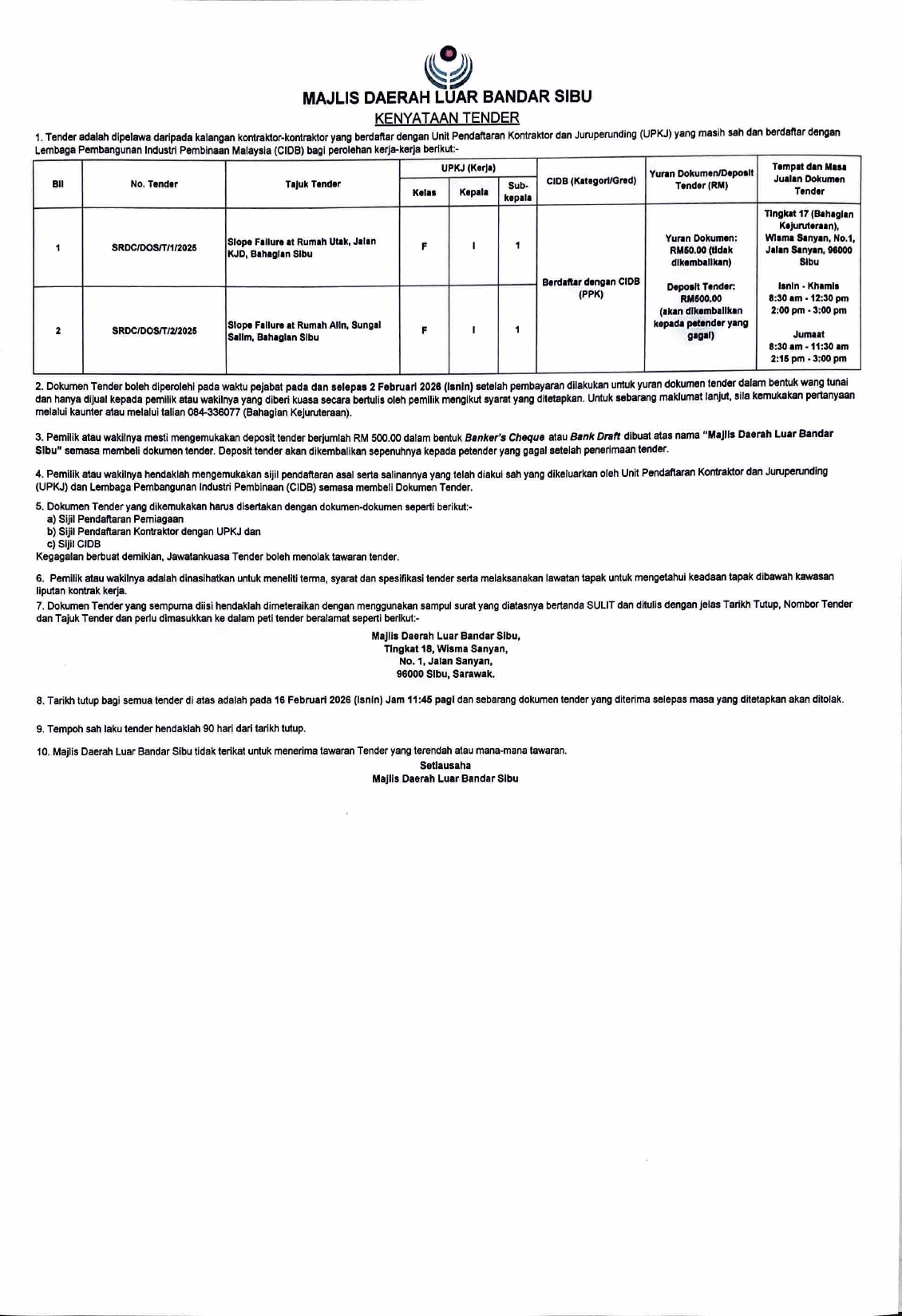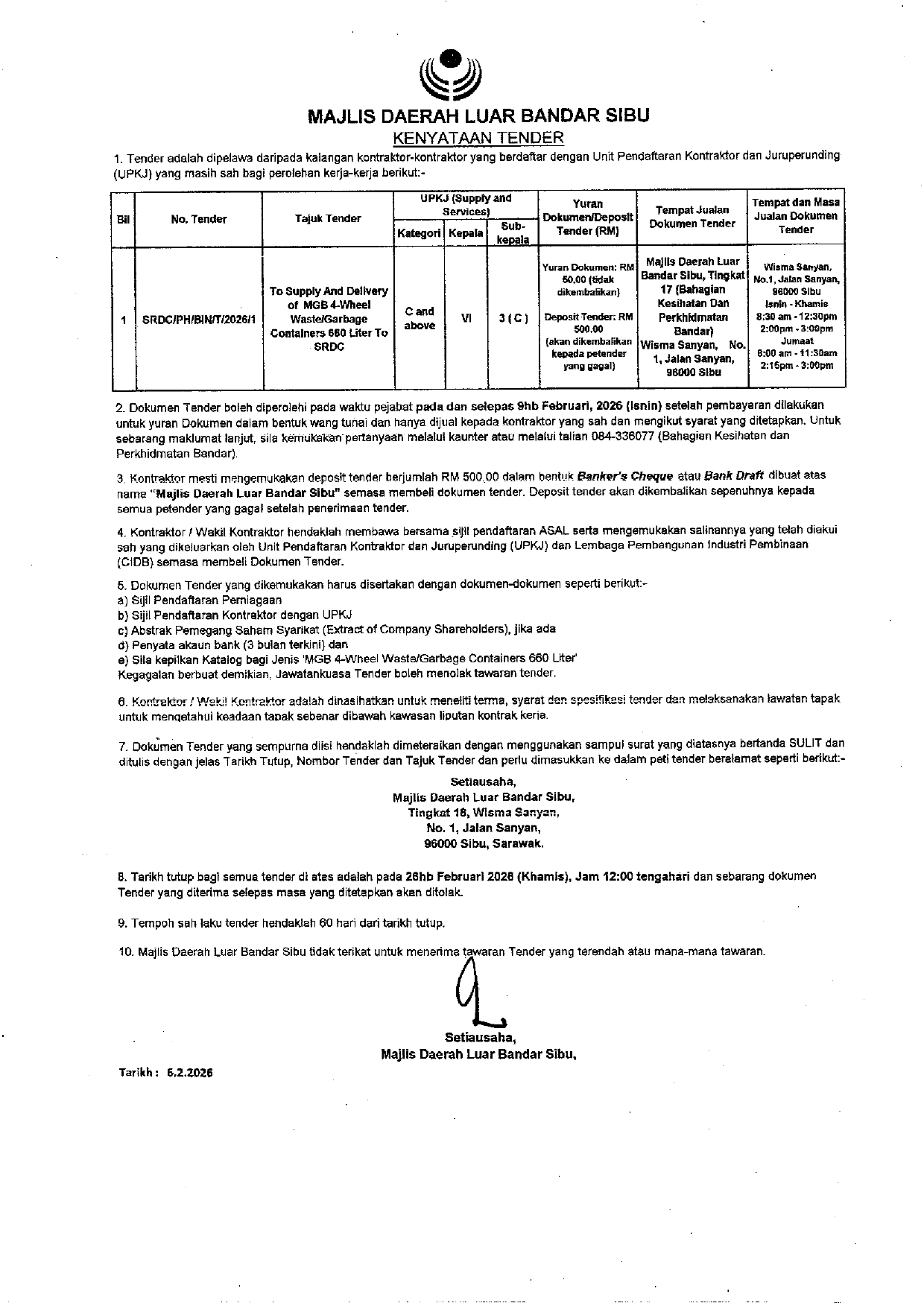 Kenyataan Tender 09022026