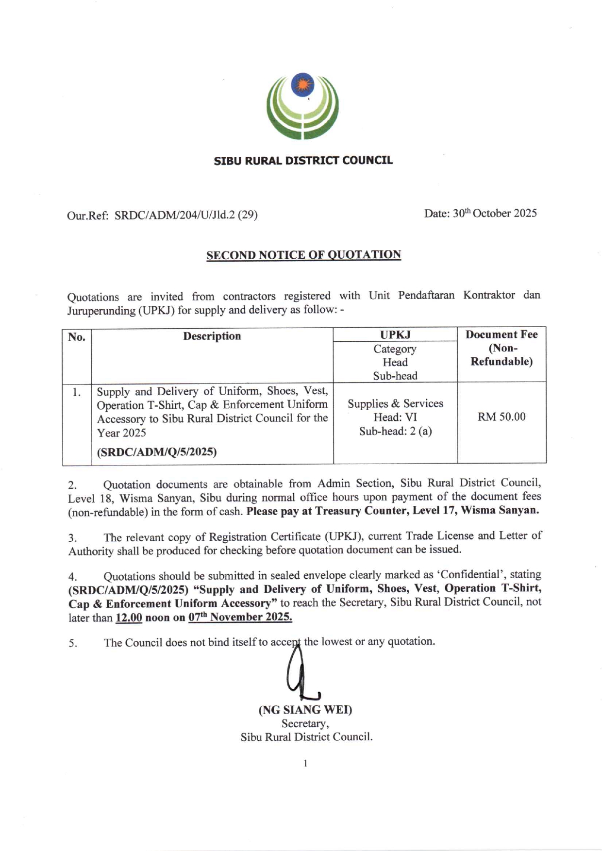 Kaunter Kutipan Hasil SRDC September 2025
