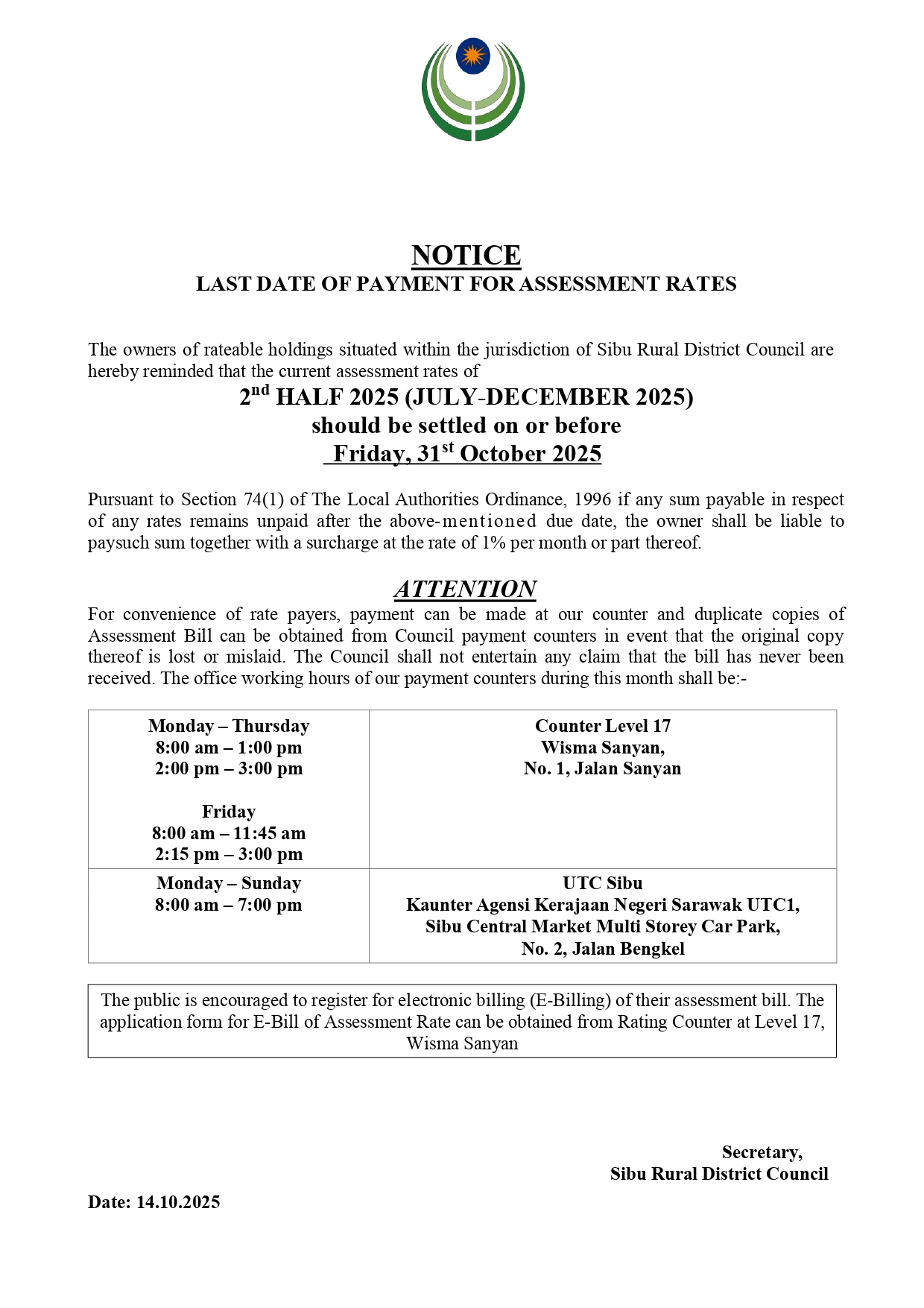 Last Date of Payment For Assessment Rates 2nd Half 2025