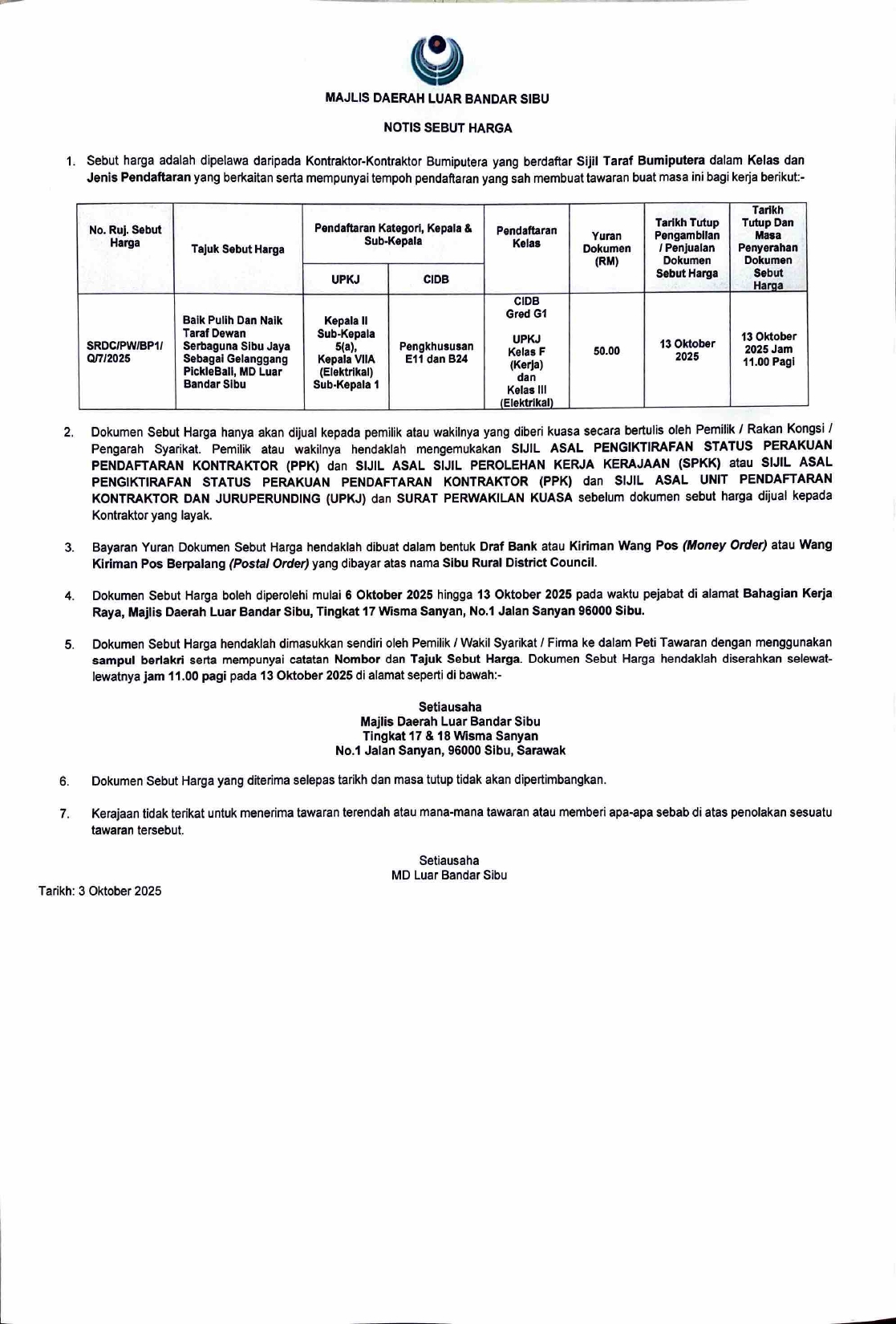 Notis Sebut Harga