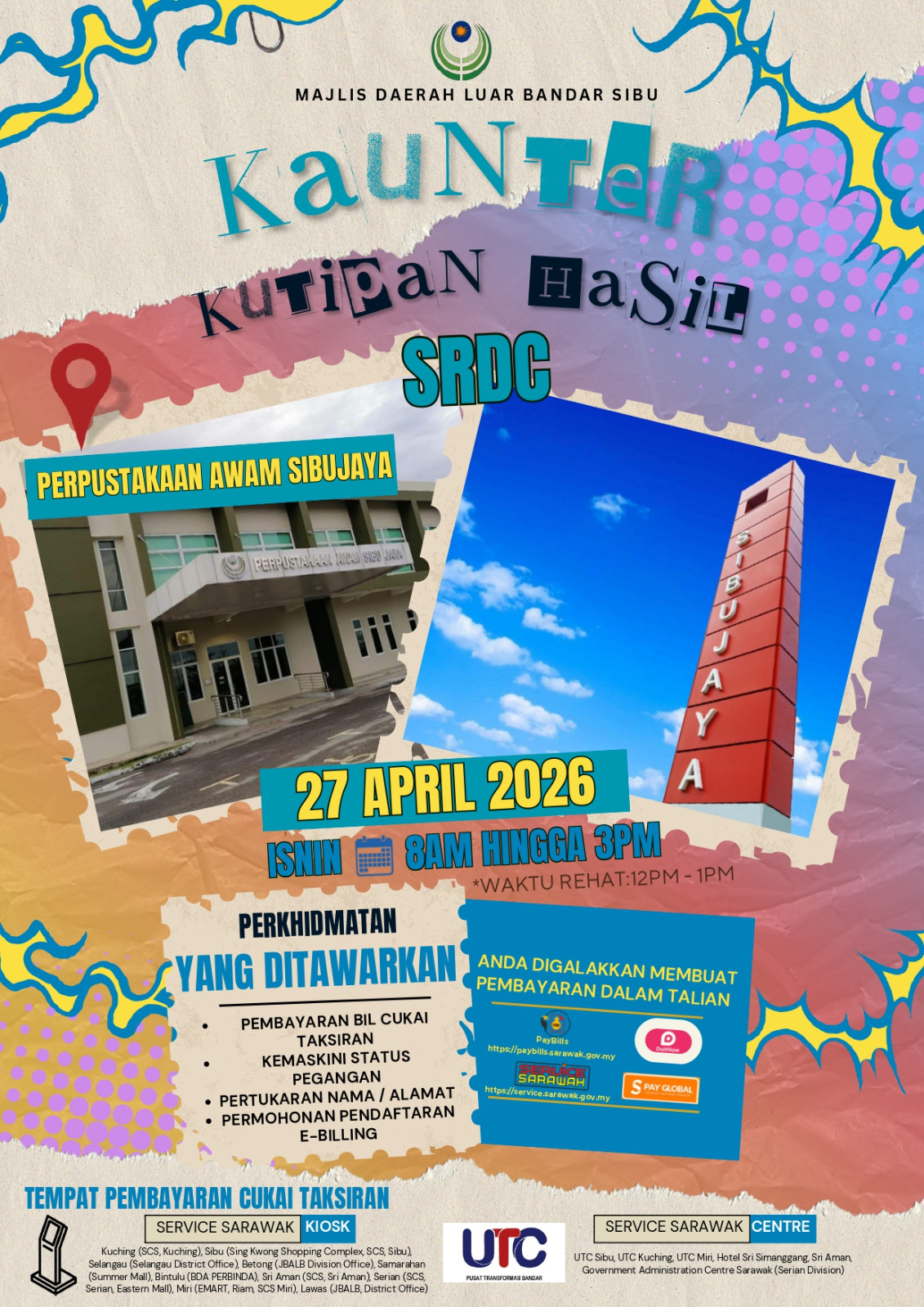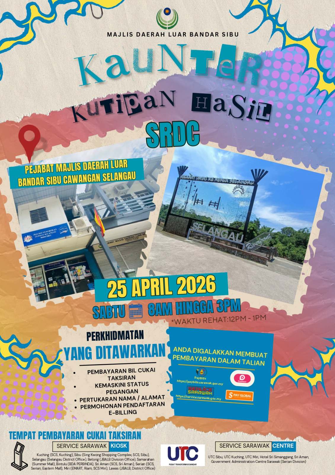 Kaunter Kutipan Hasil SRDC di Pejabat Majlis Daerah Luar Bandar Sibu Cawangan Selangau pada 25.04.2026